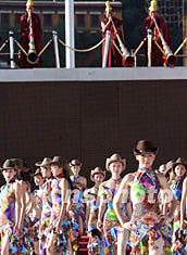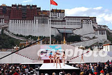 ![]() 十三日晚,姍拉娜2002世界精英模特大賽中國選拔賽在拉薩古老的布達(dá)拉宮廣場進(jìn)行決賽,身穿泳裝的模特選手在布達(dá)拉宮前一展風(fēng)采。