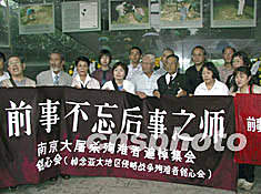圖:日本民間團(tuán)體悼念南京大屠殺遇難者 2002年08月16日 10:07 ![]() 八月十五日,日本“銘心會(huì)”、神戶——南京心連心會(huì)、長(zhǎng)崎日中友好希望之翼三個(gè)日本民間團(tuán)體組織的訪中團(tuán),在侵華日軍南京大屠殺遇難同胞紀(jì)念館內(nèi)的“萬(wàn)人坑”前舉行悼念儀式。楊艷 攝