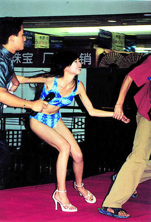 圖文:女模特脫衣推銷 男朋友憤而攪場 2002年08月19日 10:30 ![]() ■長衫就是“防腐層”■短裙代表“塑料”■脫得只剩內(nèi)衣 ![]() ■男友硬拉模特離場 攝影/趙訓成 中新網(wǎng)北京8月19日消息:讀者趙先生昨天給北京青年報打來熱線說,他前天在一個購物廣場看到一個管道廠家為了讓人們更了解“管道”的內(nèi)部結構,竟然讓兩位假扮“管道”的小姐一層一層脫道具服,直到小姐的男友出面干涉才罷休。 趙先生講述了事件的整個過程:“當時,我在商場購物,看見一家管道企業(yè)正在推介產(chǎn)品。兩位扮演‘管道’的女模特當著眾人的面脫起衣服,這讓不少觀眾大吃一驚,還有一些母親趕緊捂上孩子的眼睛。這兩位女模特直到露出了穿在里面的內(nèi)衣才停止。忽然,一位女模特的男友出現(xiàn),硬拉女模特要離開,但廠家人員就是不讓,雙方開始爭執(zhí),場面頓時變得異常混亂。” 有關廣告專家分析說,讓消費者反感的廣告形式有可能抬高了企業(yè)的“知名度”,但是卻降低了產(chǎn)品的“美譽度”,反而會給產(chǎn)品銷售帶來負面效果。畢竟,消費者是否選擇這種產(chǎn)品,最終還是決定于產(chǎn)品質量和售后服務,這樣的“秀”還是少做為好。(王旭)