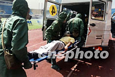 圖為武警總隊處置生化恐怖襲擊緊急救護(hù)
