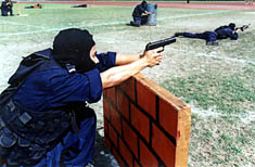 圖為防暴警察處置突發(fā)事件模擬實(shí)戰(zhàn)射擊表演