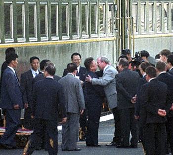 陪同金正日訪問的有朝鮮人民軍總參謀長金永春、國防委員延亨默、勞動黨中央書記金容淳、外務(wù)省第一副外相姜錫柱、國家計(jì)劃委員會委員長樸南基、鐵道相金勇三等。