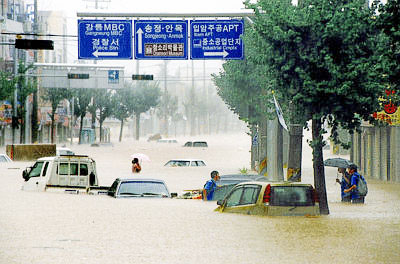 總統(tǒng)金大中周日召開內(nèi)閣緊急會議,下令政府部門和軍方盡量派出人員參與救災(zāi)和善后工作。災(zāi)情較重的有江陵及附近地區(qū),十三人在山泥傾瀉中失蹤,十部車子遭山泥掩埋,街上水深至行人的腰部,一萬九千人無家可歸。