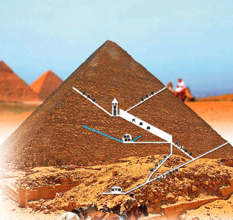 中新網(wǎng)9月15日電:據(jù)香港文匯報(bào)報(bào)道,埃及胡夫金字塔——這個(gè)世界上最大的地上陵墓上有一段令人生畏的銘文:“不論是誰騷擾了法老的安寧,死神之翼將在他的頭上降臨!本旁率呷瞻<爱(dāng)?shù)貢r(shí)間凌晨二時(shí),由美國國家地理學(xué)會(huì)組織的考古學(xué)家將借助最先進(jìn)的機(jī)械人突破“死神之翼”進(jìn)入胡夫金字塔,這將是人類第一次深入窺探金字塔內(nèi)部。屆時(shí),世界上一百四十二個(gè)國家和地區(qū)的億萬觀眾將通過電視直播看到胡夫金字塔內(nèi)部的秘密。