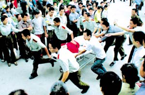 除了事發(fā)當(dāng)?shù)啬暇┙瓕巺^(qū)湯山鎮(zhèn)居民和救護(hù)人員之外,出租車司機(jī)是這座城市最先知道這一事件的人。昨天,在記者乘坐的每一輛出租車上,司機(jī)師傅都在不停地調(diào)選廣播電臺(tái),希望盡快知道更多有關(guān)中毒事件的消息。南京中北出租汽車公司的一位司機(jī)說,如果可能,他愿意無(wú)償為救護(hù)工作服務(wù),“都是些孩子和民工兄弟呀”。