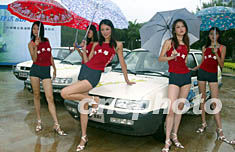 中國(guó)首批柴油轎車--捷達(dá)柴油環(huán)保轎車二十日在海南三亞舉行向市場(chǎng)投放儀式,新絲路模特大賽女選手雨中演出環(huán)保秀。環(huán)境優(yōu)美的三亞市率先在國(guó)內(nèi)推廣柴油環(huán)保轎車,以進(jìn)一步保護(hù)環(huán)境。作者:毛建軍