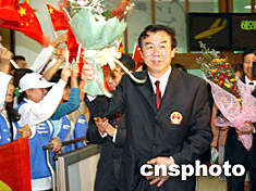 中新社釜山九月二十六日電(記者 王健)前來參加釜山亞運(yùn)會(huì)的中國(guó)體育代表團(tuán)官員及部分運(yùn)動(dòng)隊(duì),今晚在國(guó)家體育總局局長(zhǎng)袁偉民的率領(lǐng)下,乘坐民航包機(jī)抵達(dá)韓國(guó)釜山。