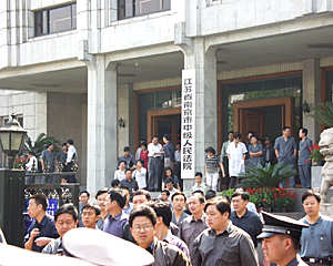 記者看到,法院門(mén)前停有二十余輛警車(chē)和三步一崗的警察,一些參加其他案件審理的人員仍有秩序地進(jìn)進(jìn)出出,并沒(méi)有因?yàn)檫@件震驚全國(guó)的大案而受影響。記者發(fā)稿時(shí),該案休庭十分鐘,即將宣判。