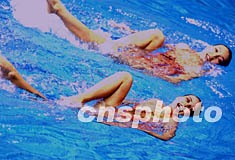 澳門花樣游泳雙人組合在釜山亞運會二日決賽上演水中“梁!,富于美感。作者:賈國榮