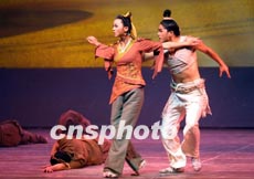 十五日晚,中新社成立五十周年暨甘肅分社成立一周年專場文藝晚會在蘭州黃河劇場舉行,剛從美國載譽(yù)歸來的甘肅敦煌藝術(shù)劇院鼎力奉獻(xiàn)大型舞劇《天馬蕭蕭》,向人們展示了成熟的敦煌舞蹈藝術(shù)。
