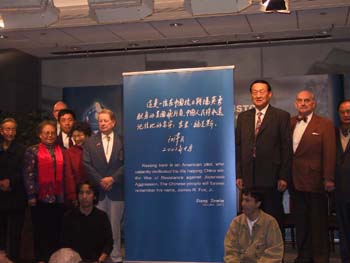 江澤民主席的題詞是:這是一位在中國抗日戰(zhàn)場英勇獻身的美國飛行員,中國人民將永遠記住他的名字:吉米.福克斯。
