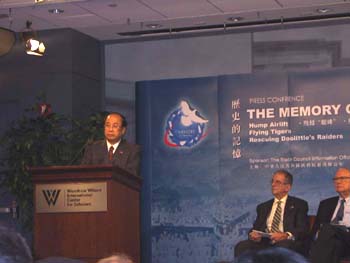 中國(guó)國(guó)務(wù)院新聞辦主任趙啟正主持了今晚的開幕式。他說:今天我們共同回憶當(dāng)年中美兩國(guó)在反法西斯戰(zhàn)爭(zhēng)中極其壯烈的歷史和兩國(guó)人民結(jié)下的深厚友誼。有時(shí)歷史會(huì)沾滿灰塵,需要去揩拭,讓它重新發(fā)光。當(dāng)年故事的主人公年事已高,我希望把這段歷史告訴年輕人,這是我們舉辦這次活動(dòng)的目的。