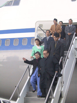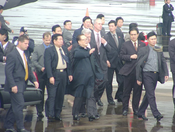 江澤民和夫人王冶坪走下舷梯 中新社記者 呂振亞 攝