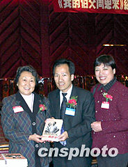 《我的伯父周恩來(lái)》一書(shū)當(dāng)?shù)貢r(shí)間十月三十一日在紐約舉行首發(fā)儀式,此書(shū)的作者、周恩來(lái)的侄女周秉德(左一)為紐約華僑華人簽名贈(zèng)書(shū)。左二為紐約華人社團(tuán)聯(lián)合會(huì)主席梁冠軍,右一為該書(shū)執(zhí)筆者南京女作家鐵竹偉。作者:趙海燕