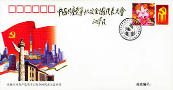 中新網11月5日電 為慶祝中國共產黨第十六次全國代表大會的召開,中國國家郵政局將于11月8日發(fā)行郵票《黃河壺口瀑布》和《鮮花》各一枚,中國集郵總公司當日還將發(fā)行紀念封一枚。中共中央總書記江澤民為紀念封題字:“中國共產黨第十六次全國代表大會”。