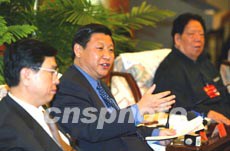 圖為十六大代表、浙江省代省長習(xí)近平在會上發(fā)言。