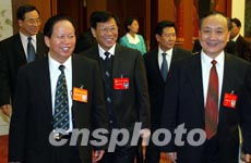 圖為郭東坡(右三)等出席中央國家機關(guān)代表團會議。