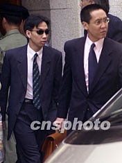 謝霆鋒在父親謝賢陪同下離開法庭。