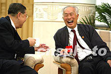 圖:林若與郭榮昌在中共十六大分組會上交談