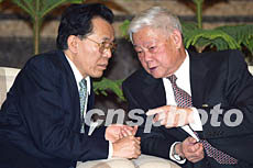 圖:葉選平與盧瑞華在中共十六大分組會(huì)上交談