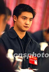 中共十六大代表、跳水世界冠軍田亮在北京出席分組會議。二十二歲的田亮是本次大會中年齡最小的代表。作者:毛建軍
