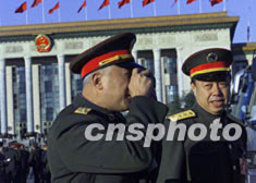 出席中共十六大的白發(fā)將軍在北京人民大會堂前拍攝有紀(jì)念意義的瞬間。作者:滿會喬