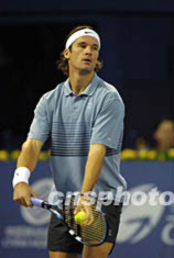 2002網(wǎng)球大師杯賽十二日在上海新國際博覽中心拉開帷幕,首輪比賽俄羅斯選手薩芬0比2不敵莫亞。圖為薩芬在比賽中。作者:湯彥俊