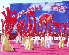 今天的椰城陽光燦爛,晴空萬里,處處充滿了節(jié)日的喜慶氣象。下午二時,中共?谑形睍浻嘈泄肌昂?谌嗣駳g慶黨的十六大勝利閉幕廣場文藝活動”開始,頓時,諾大的萬綠園歡聲雷動,鼓號陣陣,掌聲如潮,萬綠園成了歡樂的海洋。?谑行阌^(qū)、龍華區(qū)、美蘭區(qū)和瓊山區(qū)精心組織的五臺廣場文藝節(jié)目,同時在綠草如茵的萬綠園獻(xiàn)演,歌聲此起彼伏,互相呼應(yīng),氣勢如虹。海口市三百名學(xué)生進(jìn)行的少年鼓樂隊(duì)方陣表演、一千名市民表演的太極拳、太極劍、扇舞、健身操等,使數(shù)萬市民大飽眼福。美蘭區(qū)的舞龍隊(duì)、龍華區(qū)的舞獅隊(duì)、秀英區(qū)的秧歌隊(duì)也為觀眾表演了精彩的節(jié)目,博取了眾多市民的陣陣掌聲和喝采。