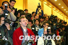 數(shù)百名中外記者十五日上午聚焦北京人民大會(huì)堂東大廳,等待與新當(dāng)選的中共中央政治局常委見面。作者:毛建軍