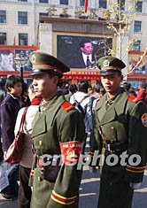 劉永禎是參加過澳門回歸和“兩會”執(zhí)勤的班長,十六大之后,很有可能滿服役期而面臨退伍。也許正因為如此,他十分珍惜這次執(zhí)勤的機(jī)會,他知道自己正在執(zhí)勤的廣場地區(qū),是展示中國武警威武、文明之師形象的“窗口”。人民群眾、外國朋友看到的,應(yīng)當(dāng)是代表著先進(jìn)警營文化的形象。他在中隊出征的動員會上,朗讀了自己精心準(zhǔn)備的一副對聯(lián):平凡崗位酬英雄壯志,颯爽英姿映衛(wèi)士風(fēng)流。