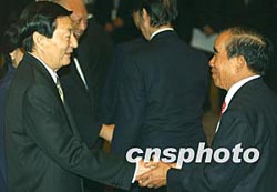 中新網(wǎng)香港11月19日電 國(guó)務(wù)院總理朱镕基今天下午在此間會(huì)見(jiàn)了香港主要商會(huì)領(lǐng)袖及工商金融界知名人士,與他們親切交談并合影留念。