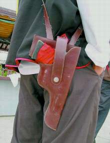 據(jù)信息時報報道,頭戴一頂禮帽,上穿絲綢馬夾,下穿寬大褲頭,屁股上還掛著一把木制“駁殼槍”,點頭哈腰,遇見客人無論男女均叫“大爺”,保安胳膊上還戴著一個寫有“廣州市治安協(xié)管員”的黃色袖章。……這京是花都區(qū)云海閣酒樓10多名保安的形象。
