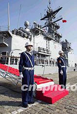 美艦抵青后,海軍北海艦隊(duì)在碼頭舉行了歡迎儀式,為美艦來(lái)訪舉行了歡迎招待會(huì)。