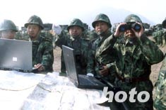 圖:解放軍通信兵在北方山區(qū)演習野戰(zhàn)通信