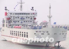 中國第一艘跨;疖囕喍伞盎浐hF一號”,25日上午已經(jīng)停泊在粵海鐵路通道南港防波堤外,預(yù)計(jì)下午進(jìn)入南港開始與船、橋、港對接。海南百姓聚集在碼頭上等待粵海鐵一號與海南土地的第一次親密接觸。作者:關(guān)向東