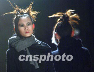 張繼成“頹廢的生靈”主題時裝發(fā)布會二十五日晚在中國國際時裝周上舉行。其設計靈感來自于本世紀初的恐怖事件,作品借助白色、黑色、米色等高雅顏色,表現(xiàn)人們的世紀矛盾心態(tài)。作者:毛建軍