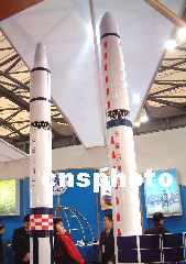 圖:長征2、4號火箭模型矗立亮相工博會