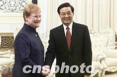 中新社北京十一月二十七日電(記者張朔)中國國家副主席胡錦濤今天下午在人民大會堂會見芬蘭總統(tǒng)塔里婭·哈洛寧時說,在新世紀,中方愿與芬方一道,以更加積極務實的態(tài)度推動雙邊友好合作關系全面健康穩(wěn)定地向前發(fā)展。
