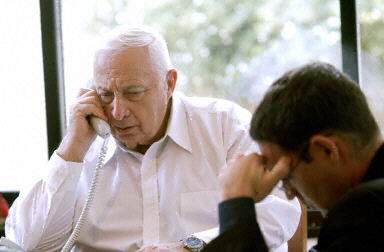 以色列總理沙龍用電話聽取情況匯報