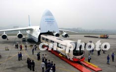 原計劃第一列車在今年十一月初由船運(yùn)抵廣州,但由于生產(chǎn)上的原因,無法在規(guī)定時間由船運(yùn)抵。經(jīng)雙方協(xié)商,德國龐巴迪公司從誠信的角度考慮,決定開歷史先河:自行擔(dān)負(fù)費(fèi)用,花費(fèi)比船運(yùn)高出十倍的天價,用世界上載重量最大的運(yùn)輸機(jī)“安一二四”進(jìn)行空運(yùn),以確保廣州地鐵二號線首段如期開通。