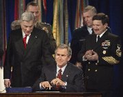 他再次警告,伊拉克拒絕履行聯(lián)合國安理會決議的后果將是戰(zhàn)爭,美國將會在危險(xiǎn)增大之前采取先發(fā)制人的行動。