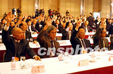 會(huì)議首先以舉手表決的方式通過了總監(jiān)票人、監(jiān)票人名單?偙O(jiān)票人為曹其真,監(jiān)票人為:容永恩、唐志堅(jiān)、黎振強(qiáng)、霍麗斯、顏延齡。