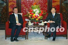 中國國務(wù)院總理朱镕基九日在北京中南海會見前來述職的澳門特別行政區(qū)行政長官何厚鏵。 作者:毛建軍