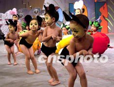 首屆南方少兒模特大賽(初賽)十一日晚上在廣州舉行,來自廣州、深圳、珠海、東莞、佛山等地幼兒園的一百八十名少兒模特參加。圖為小朋友表演的環(huán)保糸列造型,風趣獨特。作者:劉衛(wèi)勇