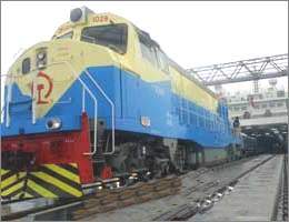 火車駛上粵海鐵1號(hào) 渡船與鐵路棧橋?qū)映晒?/b>