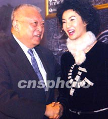 特首董建華蒞臨與明星張曼玉握手,祝賀預(yù)演成功。