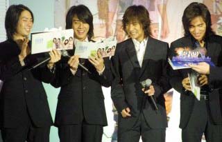 中新網(wǎng)12月19日電 以《流星花園》走紅全亞洲的臺(tái)灣超人氣團(tuán)體“F4”,在新力唱片公司的力捧下,于18日下午移師香港,舉行新專(zhuān)輯《煙火的季節(jié)》發(fā)表會(huì)。