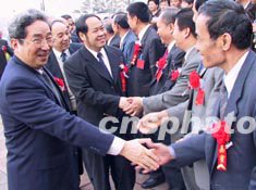 福建省政協(xié)主席陳明義(左一),十九日與出席福建省第七次歸僑僑眷代表大會(huì)的閩籍港澳代表共敘鄉(xiāng)情。作者:劉可耕