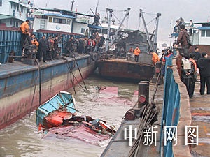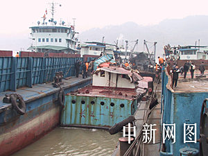 中新網(wǎng)長(zhǎng)壽十二月二十三日電(記者鄒 輝)近過(guò)四天時(shí)間的緊張打撈,重慶長(zhǎng)壽特大海損事故沉船今天下午整體打撈出水。重慶海事局官員陳勇介紹,經(jīng)過(guò)警方對(duì)沉船的仔細(xì)查找,未在沉船內(nèi)發(fā)現(xiàn)新的遇難者尸體。