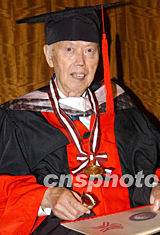 中新社香港十二月二十三日電 (記者陶社蘭)八十七歲的著名僑領(lǐng)、香港企業(yè)家許東亮先生以其愛國愛鄉(xiāng)的事跡和對僑教公益事業(yè)所做的積極貢獻(xiàn),獲頒華僑大學(xué)名譽(yù)博士學(xué)位。今天,國務(wù)院僑務(wù)辦公室副主任、華僑大學(xué)董事會副董事長劉澤彭在此間為許東亮先生頒授學(xué)位。